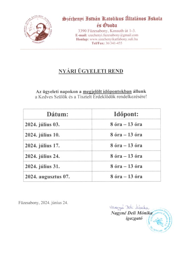 Nyári ügyelet iskolánkban